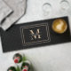 Elevate your home bar or entertaining space with this elegant bar mat, featuring an elegant gold and white monogram design. Perfect for adding a personal and luxurious touch to any setting, this bar mat is both stylish and practical. Easily customize with your initial and name for a truly unique piece that reflects your style. It's also a great personalized gift for housewarmings, weddings, anniversaries, or birthdays, and ideal for cocktail enthusiasts, home bartenders, or anyone who loves to entertain in style.
