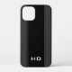 Personalized monogram black iPhone 12 mini case for men. Elegant sleek design for personalized monogram initials. Masculine / manly Birthday or Christmas gift idea for dad, father, uncle, brother, husband, grandpa etc. Monogrammed name letters. Modern typography. Stripe design.