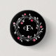 Personalized Monogram Black & White Floral Wreath Button