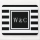 Elegant personalized initials monogram mouse pad featuring a black and white striped pattern with your initials. Designed by Thisisnotme©