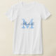Personalized monogram bridesmaid t shirts | navy blue and white. Monogrammed tees with custom name in elegant script text. Personalize for bridesmaids, flower girl, maid of honor, matron of honor, mother of the bride etc. Cute idea for wedding party, bridal shower and bachelorette party.