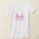 Personalized monogram bridesmaid t shirts | pastel pink and white colors. Monogrammed tees with custom name in elegant script text. Personalize for bride, bridesmaids, flower girl, maid of honor, matron of honor, mother of the bride etc. Cute idea for wedding party, bridal shower and bachelorette party.