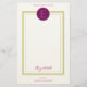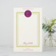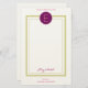 Personalized monogram business stationary. A fancy purple circle holds your initial. Your personalized name at the bottom. Also customize with your business name, phone and email. A gold double border surrounds the writing area. Fancy and elegant.