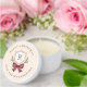Looking for the perfect holiday party favor? These personalized mini candles are a festive and charming gift for your guests. The design features a classic monogram crest with your family's initial, framed by a whimsical striped bow and a sprig of evergreen. You can personalize the monogram and curved text to create your unique and personable mini candles. © Kimbellished, LLC
