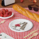 Personalized monogram editable A text red flower floral beige checkered plaid