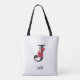 Personalized monogram editable j text red flower tote bag
