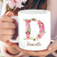 This lovely personalized coffee mug features floral letter D and customized with your name in calligraphy script, or create a unique gift for your loved ones.