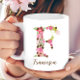 This lovely personalized coffee mug features floral letter F and customized with your name in calligraphy script, or create a unique gift for your loved ones.