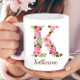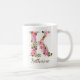 This lovely personalized coffee mug features floral letter K and customized with your name in calligraphy script, or create a unique gift for your loved ones.