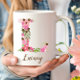 This lovely personalized coffee mug features floral letter L and customized with your name in calligraphy script, or create a unique gift for your loved ones.