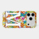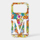 This phone case is a vibrant expression of vintage-inspired modern design. Featuring an oversized, grunge-distressed monogram in a bold typography, it exudes a bohemian, folksy charm. The eye-catching, colorful palette of blue, yellow, red, terracotta, coral, and floral elements creates a unique, floral vintage-inspired pattern that is sure to turn heads. Perfect for those who love a touch of retro flair with a contemporary twist.