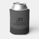 Keep your beverages chilled in style with our sophisticated Koozie design. Crafted from luxurious gray and black vintage faux leather, accented with leather stitches, this Koozie can be personalized with your name and monogram for a unique touch.