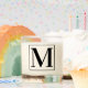 The monogram initial, delicately rendered in black, takes center stage, capturing attention with its understated charm.
