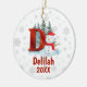 Personalized initial letter D snowman Christmas ornament. Customizable first name and year.