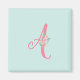 This pretty magnet features watercolor flowers in soft pink on a mint green background. You can personalize this monogram to make it your own.