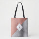 Personalized monogram metallic rose gold / pink and silver all-over-print tote bag