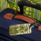 Of of the two luggage tags have some scratch on it.