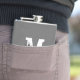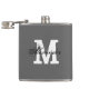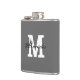 Personalized monogram name initial drink flask with elegant script text. Customizable gray and white color. Cool Birthday gift idea for him or her. Also great for wedding / bachelor party. Unique gift idea for bride and groom / groomsmen and bridesmaids. Personalize it with a name and monogram initials. Alcohol / Drinking present. Custom background color. Vintage typography.