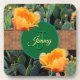 Personalized Monogram Orange Prickly Pear Cactus 2 Beverage Coaster