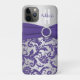 Personalized Monogram Purple and Silver Damask Case-Mate iPhone Case