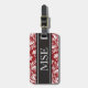 Personalized Monogram Red Black Damask Pattern Luggage Tag
