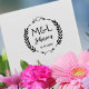 Custom monograms, family name and wedding date rubber stamp. Decorated with an ornamental round wreath that includes a little heart at the top as a crown to the new marriage. Customize it by editing the initial letters, last name and wedding date to show your own wedding info.