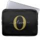 Personalized Monogram Script Name Black White Gold Laptop Sleeve
