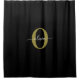 Personalized Monogram Script Name Black White Gold Shower Curtain