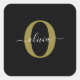 Personalized Monogram Script Name Black White Gold Square Sticker