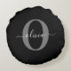 Personalized Monogram Script Name Black White Grey Round Pillow