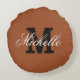 Personalized monogram sienna brown round throw pillow