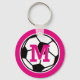 Personalized monogram soccer mascot keychains for girls. Make your own monogrammed keychain for kids coach, players and fans. Add your name initial letter. Customizable color ie girly NEON PINK. Cute favor for sports themed Birthday party.