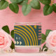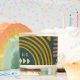 Personalized Monogrammed Abstract Pattern Scented Candle from Ricaso. A beautiful modern design with a green, yellow, pink background. fill in the initials on this monogram themed candle