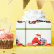 Creative motorcycle themed Christmas holiday gift wrap featuring Santa motorcyclist. Edit text to add name of your favorite biker.