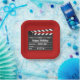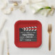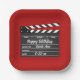 Fun paper party plates feature retro style movie clapboard with customizable text on red background (change to any color you prefer). Personalize for birthdays, movie awards nights and more. Coordinates with other products from our Movie Theme Gift Wrap and Party Supplies Collection