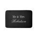 Personalized Mr and Mrs bath mat for newly weds. Cute wedding gift idea for newlyweds, bride and groom, husband and wife, just married couple etc. Elegant script typography. Customizable background color ie black, blue, pink, gray etc. Use in shower / bathroom.