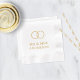 Custom wedding foil napkins display a "Mr and Mrs" monogram design that can be personalized with the couple's names and wedding date. Simple and chic design is features elegant serif typography with an intersecting rings design