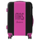 This black and hot pink suitcase is decorated with "MRS" and Last Name on front. Easy to personalize. What a unique and fun wedding gift for a couple going on their honeymoon. Matching "MR" suitcase (black/blue) is my zazzle product 256074820168201700. All Rights Reserved © 2016 Alan & Marcia Socolik.