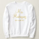 mr and mrs modern anniversary, bride and groom elegant established, honeymoon beach trip just married, calligraphy script newly weds, couple gift for her bride, custom engagement bridal shower gifts, wedding present for bride birthday, last name recently engaged modern, fiance bachelorette party sweatshirt, personalized mrs est newlywed sweater gold