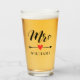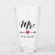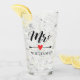 Mrs in calligraphy style black script font with a red heart and black arrow embellishments. Personalize with your name in black serif font.