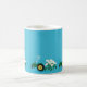 Personalized mug with with green tractor and white hydrangeas and bees designed with customizable text reading Bee-YOU-Tiful. Digitally drawn and coloured and designed for anyone that loves tractors and flowers.
