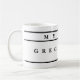 Create a custom personalized coffee mug with a simple minimalist design. Choose a color for text and background including the design elements with a few clicks, or if you would like it customized and personalized for you at no extra charge, contact designer at personalizedbyu@gmx.com before you place your order