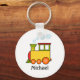 Cute multicolored train in yellow, red, green and orange. Puffs of blue fluffy steam are coming out of the chimney. Below is a template to add your name to personalize this keychain.