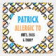 Personalized Multiple Food Allergies Kids Stickers. Pattern of food allergy symbols - no nuts, no peanuts, no gluten, no fish, no dairy and no eggs with black lines through on a white background. Center has white circle with text to add name and allergens. Food allergy alert stickers are great for labeling safe foods, attaching to medicine kits, safe snacks, lunch boxes. Edit to change text color or font style. Designs by Lil Allergy Advocates www.lilallergyadvocates.com