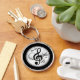 Personalized Music Keychain for Him or Her. 2 Sizes and Round or Square or choose the cheap music gift design, Button Style Keychain which are nice Music Party Favors. Black and White design with Treble Clef and Notes in Swirls against a white shaded background. For COLOR, Design, Occasion and Product CHANGES, Call Designer Linda: 239-949-9090 EST Monday - Friday 10AM to 6PM