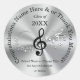 Sharp looking Silver, Black and White Personalized Music Notes Stickers for Graduation or ANY Occasion, COLORS and Text. CALL Designer Linda: 239-949-9090 for COLOR Changes, Occasion, Design or to create other Music Themed Graduation Party Supplies, Ideas, Decorations and Gifts for Guests, Music Party Favors and more.
