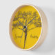 Vintage Mustard Yellow Brown Oak Tree White Dots Custom Wall Clock - Your Name - or change to read whatever you like. wedding anniversary clock, newlyweds, 1st christmas, first christmas,,wedding anniversary gifts, family established,