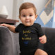 Celebrate your baby's first Festival of Lights with this sweet personalized Hanukkah bodysuit. Featuring a classic menorah design, hanging stars, and space to customize with your child’s name, this soft cotton bodysuit is perfect for commemorating this special milestone. The elegant gold and blue text stands out beautifully on white, making it a meaningful outfit for family gatherings, holiday photos, or gift-giving. Available in multiple sizes and easy to personalize, it’s a keepsake you’ll cherish for years to come.