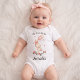 Adorable baby girl Bodysuit featuring a cute bunny with a pink bow and two colorful balloons, along with the text “My First Easter.” The design can be personalized with the baby’s name, making it a perfect keepsake and a sweet outfit for celebrating a baby’s first Easter, family photos, and spring festivities.