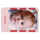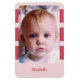 This cool magnet lets you add your favorite photo and name on a pale pink background with pink stripes.